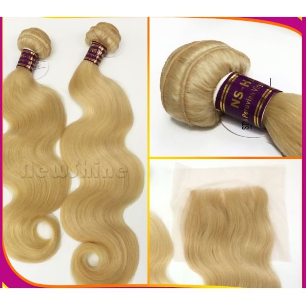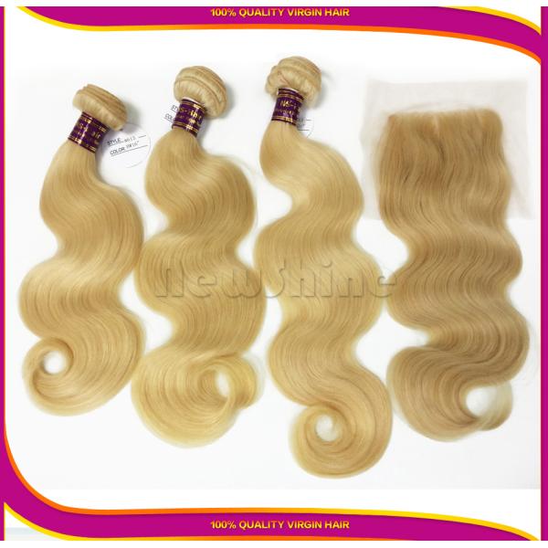 Free Shipping Popular Blonde 613# 10A Grades 100% Virgin Peruvian Hair Body Wave With Lace Closures 10inch-30inches Images |
